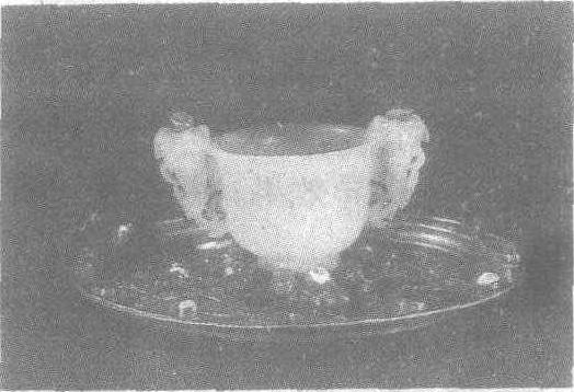 字词 | 嵌宝石玉花耳杯及鎏银托盘 |