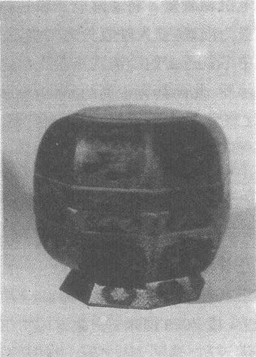 明代晚期。口径32厘米,通高29.6厘米。安徽省博物馆藏。木胎。八角形,子母口,外撇八角圈足。内置一活动搁盘。盒外壁黑漆地上有四个对称的花形开光,圈足亦同。开光内以红、蓝、白、绿、橘黄等色饰以山水小景,折枝花卉,怪兽,舞龙等。开光外用纤细的螺钿和描金镶嵌勾勒繁杂的锦纹。盒内髹黑漆,圈足内有朱漆楷书款“辉记恩诚堂”。此盒色彩斑斓,纹饰绚丽多姿,尤其山水小景,颇具意境。嵌螺钿见“嵌螺钿朱漆龙纹盘”条目。