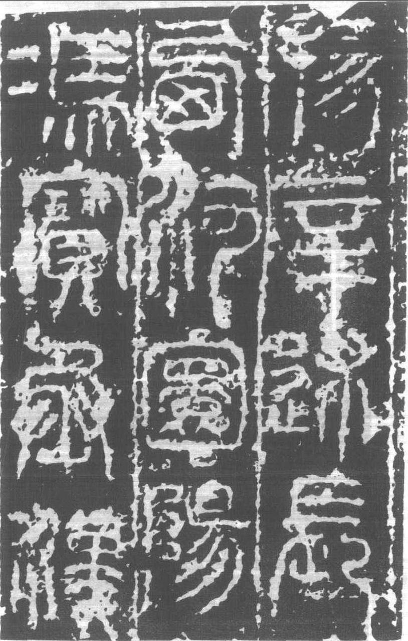 嵩山太室石闕銘東漢·元初五年 (118) 刻。在河南省登封縣城東八里中岳廟前。屬 “嵩山三石闕”之一。係漢陽城長吕常所建,原立于祭太室山之神廟前。東、西一對,闕均完好,高七尺許,石横堆成八列。七列中,二列刻銘文,余五列為畫像。隸書二十七行,行九字,第三行十字。南面闕身有篆書題額,凡陽文九字:“中岳泰室陽城□□□。”後三字已泐莫識。北面銘文中有“元初五年四月陽城□長左馮翊萬年吕常造作此石闕”句。銘文書法,藴含篆意,惜漫漶甚,如非精致拓本,無以窺其書致。清王澍跋文有 “此碑每作波法皆雙鈎” 句,其實不然,中央黑地漸露所致也。〈禮器碑〉亦然。對此闕書法,清楊守敬 《平碑記》有確論: “漢隸之存于今者,多磚瓦之文,碑碣皆零星斷石,惟 〈太室〉、〈少室〉、〈開母〉三闕字數稍多,且雄勁古雅,自 〈琅邪臺〉漫漶不得其下筆之迹,應推為篆書科律,世人以鄭文寳〈嶧山碑〉為真從李斯出,而奉為楷模,誤矣。”