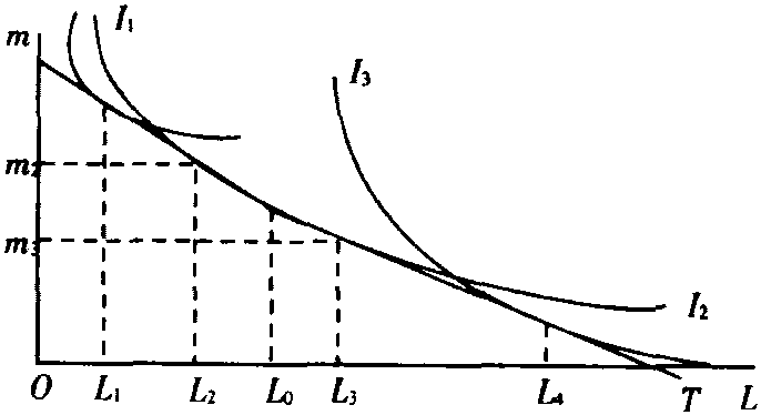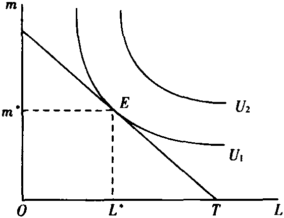 释义 | 工作-闲暇模型Work-leisure Model这个模型把消费者行为理论直接应用于时间分配问题。假定各个工人把时间专用于市场工作和被称为闲暇的非市场活动两方面。个人在时间和价格的约束条件下通过选择 (靠工作获得的) 商品和闲暇时间的组合来使他的效用最大化。时间和价格约束可以组合为单一的预算或收入约束,其斜率能度量工资率。在以闲暇替代消费中商品的边际替代率等于预算线的斜率 (工资率) 时,就存在均衡。工资率上升的效应可以分解为收入效应和替代效应,虽然总的效应方向不能预先确定,而要决定于负收入效应(假定闲暇是正常货物)是否超过正替代效应。 工作-闲暇模型 工作-闲暇模型Work-Leisure Model又称收入-闲暇模型 (Income-Leisure Model),把消费者选择理论应用于时间分配问题的模型之一。该模型假定消费者把他的时间应用于工作和闲暇活动两个方面。消费者在时间和价格的约束条件下通过选择收入和闲暇时间的特定组合来使他获得的效用达到最大值。通过此模型可以解释个人的劳动供给行为。这一问题的数学模型可以表述为: 图1 式中,U(m,L)是以收入(m)和闲暇时间(L)为自变量的效用函数,ω是工资率,T代表消费者的时间总量(如每天只有24小时)。效用最大化的一阶条件:图2 如果工作时间分为两部分,一部分是正常工作时间,其工资率是ω,另一部分是加班加点,其工资率是ω′,且ω′>ω。其数学模型可表述为: max U= U(m,L) ![]() (L2,m2)~(L3,m3) 利用收入-闲暇模型可以推导出劳动供给函数或劳动供给曲线。如图3,当工资率提高后(ω3>ω2>ω1),相应的工作时间就可确定出来,即: W=T-L=W(ω) 式中,W(ω)是劳动供给函数。一般认为,个人的劳动供给曲线是向后弯曲的,这是由于工资提高后的替代效应和收入效应共同作用的结果。注意,与静态的消费者选择理论(没有时间分配)不同,这里替代效应是负的,即但收入效应是正的,即 图3 这并不表明闲暇是劣等品 (恰恰相反,闲暇被看成正常商品)。根本区别在于静态消费者选择理论中的货币收入是固定的,而这里既定的约束是时间总量(T),当工资率提高时,货币收入(m)也随之提高。因此替代效应和收入效应变化方向相反。这样,当收入效应大于替代效应的绝对值时,劳动供给曲线就向后弯曲。☚ 动态乘数 核 ☛ |