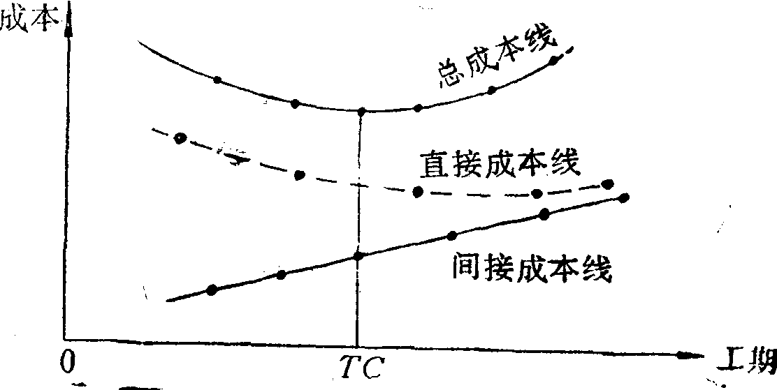 亦称时间一费用优化。一项任务的总成本包括直接成本(如材料费、人工费等)和间接成本(如企业管理费、仓库管理费等)。直接成本、间接成本与工期的关系,可图示如下:由图可知,采取缩短工期或增加产量都会引起直接成本的增加和间接成本的减少;反之,则会引起直接成本的减少和间接成本的增加。工期成本优化,就是要研究分析工期与成本二者的相互关系,以求用最低的总成本获得最短的工期。也就是说,要尽量找到如图所示的C点,因为在此点上总成本(C)最低,此时工期TC,即是理想的工期。