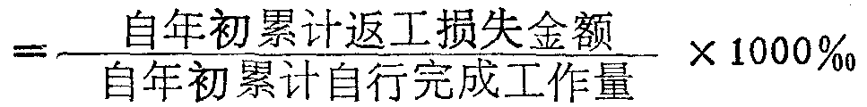 简称“返工损失率”。指一定时期内返工损失金额同自行完成工作量的比率。反映由于工程质量事故造成经济损失的相对指标。计算公式一般为:工程质量返工损失率式中,返工损失金额包括因返工损失的材料费、人工费和一定数额的管理费。但应扣除拆下可利用的材料价值。由于质量事故的发生与返工修理在时间上往往有先有后,本期发生的事故可能到下期才进行修补,而本期返工修补的并不一定是本期发生的质量事故。为了使两者口径比较一致,工程质量返工损失率可如上采用累计数来计算。工程质量返工损失率愈大,表明返工损失金额支出愈多,工程质量愈差。在实际工作中,可采用适当方法对建筑安装工程施工过程中返工现象及其质量事故进行分析,以期寻得其中的诸多原因,尤其是主要原因,从而采取有关措施,提高工程质量。通常采用的这类分析方法有:分层法(分类法)、主次因素图分析法(排列法)及因果图分析法。