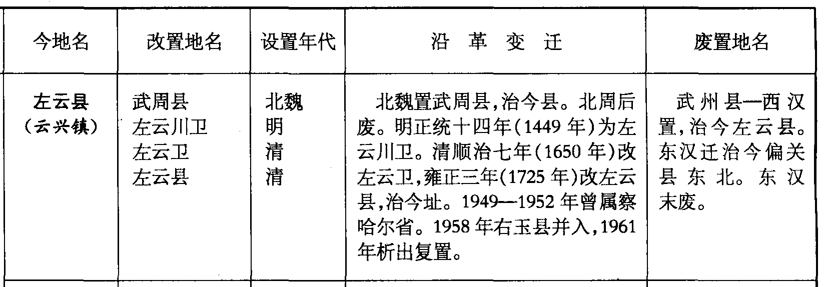 左云县(云兴镇)武周县左云川卫左云卫左云县北魏明清清北魏置武周县,治今县。北周后废。明正统十四年(1449年)为左云川卫。清顺治七年(1650年)改左云卫,雍正三年(1725年)改左云县,治今址。1949—1952年曾属察哈尔省。1958年右玉县并入,1961年析出复置。武州县—西汉置,治今左云县。东汉迁治今偏关县东北。东汉末废。