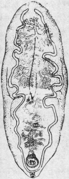释义 | 布氏姜片虫吸虫纲片形科姜片属的一种。寄生于人和猪的小肠。1843年布斯克在英国的一具印度水手尸体的十二指肠中首先发现此虫。中国有18省流行此种寄生虫病。布氏姜片虫成虫长椭圆形,扁平,肉红色,长20~75mm,宽8~20mm,厚0.5~3mm。是在人和猪体内寄生的最大吸虫。口吸盘直径约0.5mm,位于体前端,腹吸盘距口吸盘近,直径约2~3mm。卵椭圆形,大小为(130~140μm)×(80~85μm)。卵随人粪或猪粪排出体外,落入水中,在26~30℃的温度条件下,经3周左右发育为毛蚴,毛蚴成熟后钻入中间宿主扁卷螺体内继续发育,经过胞蚴、母雷蚴、子雷蚴而后产生尾蚴,尾蚴成熟后从螺体逸出,在水中游泳。一般毛蚴进入螺体至尾蚴逸出约需45d。尾蚴在水中不久就附着在水生植物上形成囊蚴,少数尾蚴亦可在水面成囊蚴。囊蚴在潮湿的条件下可生存数月之久。人或猪吞食囊蚴后,尾蚴在小肠内脱囊,吸附于黏膜,经1~3个月发育为成虫。在中国发现的可供姜片虫作为中间宿主的扁卷螺有4种:凸旋螺、肯氏圆扁螺、半球多脉扁螺和大脐圆扁螺。由于病原发育所需的温度较高,7月尾蚴方从螺体开始逸出,附着于水生植物上形成囊蚴,等待侵袭人畜,所以该病的流行都在下半年。 布氏姜片虫简称“姜片虫”。吸虫纲,片形虫科。寄生于人体小肠中的大型吸虫。雌雄同体。虫体肥厚不透明,呈肉红色,背腹扁平,前端稍尖,后端钝圆,压制标本状似姜片。大小20—70×8—20毫米。虫卵淡黄色,椭圆形,壳薄,有小盖。中间宿主为扁卷螺,囊蚴附着在菱、荸荠等水生植物体表上,人因生食此类植物而感染,并引起姜片虫病。 布氏姜片虫fasciolopsis Buski简称姜片虫。主要寄生在猪或人的十二指肠和空肠内,可引起姜片虫病。成虫雌雄同体,呈肉红色,腹背扁平,大小20~75×8~20mm。虫卵随粪便排出后在水中孵出毛蚴,遇中间宿主扁卷螺时可钻入螺体,发育繁殖成许多尾蚴。尾蚴逸出后吸附在菱、荸荠、茭白等水生植物上,形成囊蚴。人体感染主要与生食水生植物有关。感染者可出现间歇性腹泻和腹痛,重者常呈消瘦、贫血和浮肿。确诊有赖于粪检查到虫卵。可用吡喹酮治疗(图)。 布氏姜片虫成虫 |