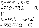 释义 | 帕舍指数见“派氏指数”。 帕舍指数 帕舍指数Paasche indices简称帕氏指数,包括价格指数和物量指数。其中帕氏价格指数(Pp)是以报告期t的价值作为权数的价比的调和平均数;帕氏物量指数(Pq)是以报告期t的价值作为权数的量比的调和平均数。公式如下: 当编制帕氏指数的时间数列时,权数随着时间的变化而不同。 帕氏指数也可解释为一个向后看的拉氏指数的倒数:即利用时期t作为基期的时期0的拉氏指数的倒数。由于帕氏指数和拉氏指数互为倒数,所以它们之间存在着重要的对称性。具体地说,一个拉氏价格(物量)指数和对应的帕氏物量(价格)指数的乘积与所涉及的货物和服务流量总价值的对称变化是一致的,即: 一旦知道两个时期的总价值,即∑Vt和∑V0,以及拉氏和帕氏这对互补指数中的一个,就可以利用上述关系式间接推导出另一个。例如: 因此,可用帕氏价格指数除价值的对称变化来间接地得出拉氏物量指数。直接计算价格指数通常比直接计算物量指数更为容易,且代价也较小,因此,在国民经济核算和经济统计中,常见的做法是间接地计算物量指数。 ☚ 拉斯派雷斯指数 费希尔理想指数 ☛ |