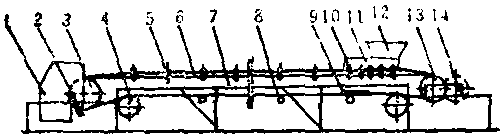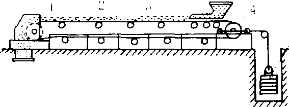 释义 | 带式输送机belt conveyor又称皮带杌。用橡胶输送带作为牵引构件运送散粒物料或成件货物的输送机。由一根首尾相连的胶带绕过机头的驱动滚筒和机尾的从动滚筒组成一条封闭的循环线。电动机的动力通过减速器使驱动滚筒转动,依靠胶带与驱动滚筒之间的摩擦力带动胶带运行。为了避免胶带在滚筒上打滑,用张紧装置使胶带保持一定的预紧力。输送胶带可以水平布置或按一定倾斜角布置。在输送机胶带下设有若干组支承托辊,避免胶带承载后下垂。托辊有槽型和圆柱两种。前者用于输送散粒物料,后者用于输送成件货物。带式输送机生产率很高,广泛应用于国民经济各个部门。 带式输送机 1.驱动滚简 2.橡胶带 3. 支承托辊 4.从动滚筒 5.张紧装置 带式输送机靠输送带的运动来输送物料的机械设备。由绕过若干卷筒并支承在许多托辊上运动的挠性无极带和传动机构等组成。多用于流水生产线。 带式输送机 带式输送机belt conveyor通过输送带运动实现货物连续运输的装卸运输机械。由托辊支承、改向及张紧滚筒将其张紧的输送带,在驱动滚筒藉滚筒与张紧带之间的摩擦力驱动下运动,将输送带上承载的货物运送到卸载地。其生产效率主要决定于输送带的宽度和带的运动速度。 ☚ 气力输送机 轮胎起重机 ☛ 带式输送机 带式输送机用连续运动的无端输送带输送货物的输送机械。以挠性输送带作为货物承载件和牵引件。输送带绕过传动、改向、张紧等滚筒,并支承在许多托辊上。工作时驱动传动滚筒,靠传动滚动与输送带之间的摩擦力使输送带运动,从而把放在输送带上的货物随输送带一起被运送到卸货地点卸出。它既可输送散货,也可输送件货。按其工作特点可分为: 固定式、移动式、可逆式、伸缩式等类型; 按其输送带材料可分为:帆布带式、橡胶带式、钢带式等多种。在港口以胶带式输送机应用最为广泛。如图示。 固定带式输送机 ☚ 波形挡边带式输送机 埋刮板输送机 ☛ |