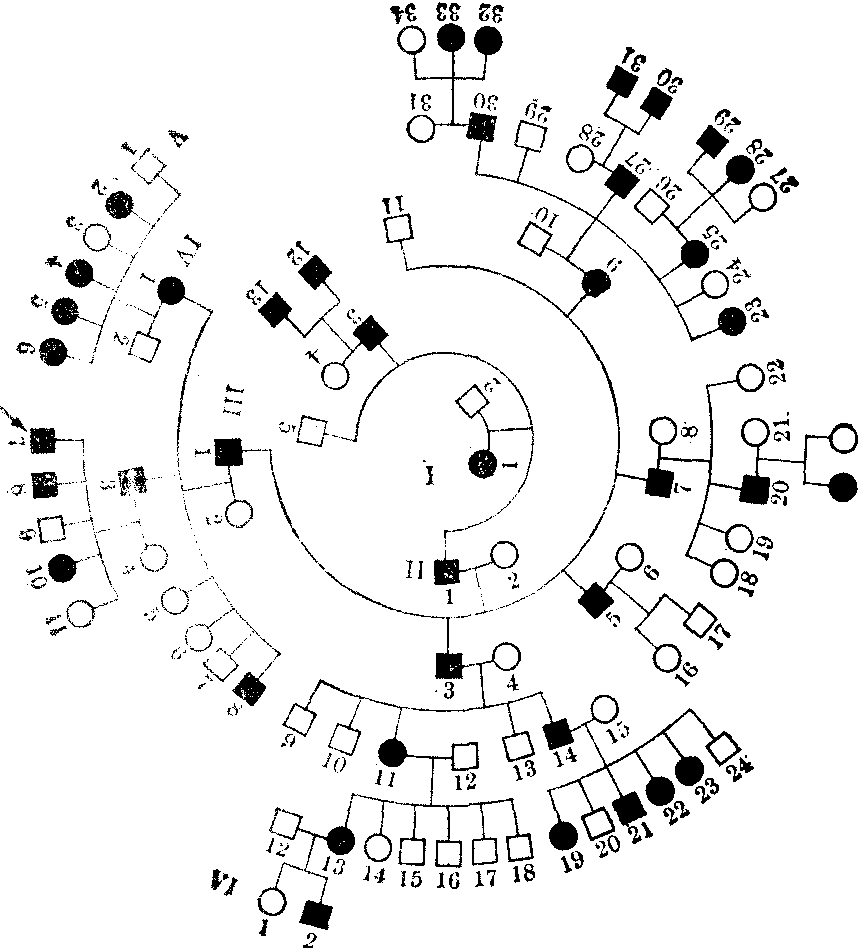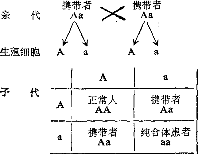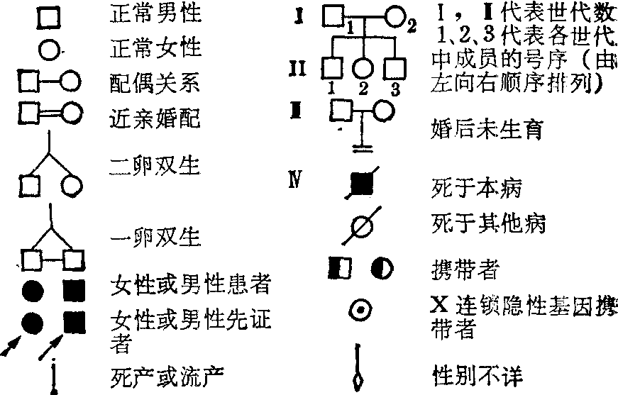 释义 | 常染色体遗传 常染色体遗传单基因遗传中,凡是某种性状的基因位于常染色体上,即位于第1号到第22号染色体的任何一对上,这种性状的遗传就属于常染色体遗传。可分为常染色体显性遗传和常染色体隐性遗传两类。 图1 常染色体显性遗传病杂合体患者与正常人婚配图解 过随机受精,将形成基因为Aa和aa的两种数量相等的受精卵,将来分别发育为遗传病患者和正常人。因此,子代中发病患者约为1/2。也可以说,每生育一次都有1/2的机会生出遗传病患儿。在医学遗传学中常用系谱分析法来判断某种病的遗传方式。系谱是表明某种遗传病患者家族各成员中发病情况的图解。系谱中常用的符号如下: 系谱中有一个先证者,这是指医生首先确诊的患者,从他(她)开始着手调查研究后才绘成系谱,也叫索引病例。一个常染色体显性遗传病的系谱有以下特点: ❶患者双亲之一常是患者; ❷患者的同胞中约有1/2是有病的,而且男女发病机会均等。这一点在个别小家系中不一定得到很好反映,如果把整个系谱中几个婚配方式相同的小家系总计起来分析,就会看到近似的特点; ❸在连续几代中都有该病患者,也就是遗传病连续传递; ❹双亲无病时,子女中一般不出现患者。上述各特点用杂合体患者与正常人婚配的情况可以作出适当解释。先天性肌强直的系谱基本上具有上述特点,所以可以根据系谱分析来判断,这种病是常染色体显性遗传。 图2 一例先天性肌强直的系谱(孙×明家系) 上述实例中(图2),杂合体Aa得到很好的表现,它象纯合体AA那样,也形成了典型的患者。这种情况叫完全显性。从完全显性到完全隐性之间存在着各种不同程度的过渡状态。一种情况是杂合体Aa在不同条件下,可以形成各种不同的表型。在某种遗传背景和某些环境因素的影响下,表现为显性; 在另一些情况下,则不表现出来,即出现不完全外显率。这种情况叫不规则显性或条件显性。这可能是遗传背景中修饰基因对主要基因作用的结果。主要基因是指对表型有显著效用的基因,即控制单基因遗传性状形成的基因。修饰基因则是指其他位点上对主要基因的表型反应产生一定影响的基因。修饰基因包括两类:加强基因能加强主要基因的表型反应;减弱基因能减弱主要基因的表型反应,甚至完全抑制其表现。在减弱基因的影响下,一种显性遗传病的杂合体就会出现不完全外显率。另一方面,也可能由于环境因素,这是指影响个体发育的各种外界条件,其中的一些条件是某种基因的表型反应所必需的,缺少这些外界条件,杂合体的表型反应就不能产生,结果也会形成不完全外显率。 不规则显性遗传病的系谱中,虽然具有一些显性遗传的特点,但是,常常可以看到越代遗传的现象。多指(趾)有时就呈不规则显性遗传。下列系谱中(图3),先证者II2有多指,他的子女中III1和III2也有多指,III3的双手正常,这表明先证者II2是多指基因的杂合体(Pp)。然而,II2的父母I3和I4的手指正常。那么,II2的多指基因(P)是否经突变新产生的呢? 从II2的二伯父I2是多指患者来看,很可能并非如此。I3很可能象12一样,从他们的父亲(或母亲)传来了致病基因而是杂合体(Pp),不过由于内、外环境的作用,致病基因(P)的作用未能外显,所以有正常手指。尽管如此,I3却会将致病基因(P)传给其子女。这样的系谱表明了不规则显性遗传的特点。 另一种情况是杂合体(Aa) 在不同年龄的表型反应是不同的。在幼年时没有表现出显性基因的作用,在个体发育的较晚期,显性基因的作用才表现出来。这叫延迟显性。遗传性小脑性运动失调(Marie型)就是延迟显性遗传的。杂合体在30岁以前并无任何症状,看来象一个正常人,35~40岁才逐渐发病而被确诊为该病患者。在下列系谱(图4)中,患者的年轻同胞中发病率偏低。患者IV1的弟、妹IV2~6虽然都未发病,由于她(他)们年龄都不满20岁,所以应估计到她(他)们各有1/2的可能将会发病,而且她(他)们婚后所生的子女中也可能会发病。在延迟显性遗传的疾病中,有时有提前发病的现象。这是指遗传病在连续几代的遗传中,有发病年龄提前和病情严重程度增加的倾向。例如,在本系谱中,I1在39岁时开始发病,II3在38岁时开始发病,III8在34岁时开始发病,IV1在23岁时已发展成瘫痪。 图3 一例多指的系谱(张×家系) 图4 一例遗传性小脑性运动失调(Marie型)的系谱(刘××家系) 还有一种情况是性别对表型反应有明显的影响。杂合体的表型在不同性别中是不同的,这并非性染色体上的基因作用所造成,而是由于性别差异的影响。这叫从性显性。例如早秃是常染色体显性遗传的,杂合体(Bb)男性会出现早秃; 相反,女性中的杂合体(Bb)不出现早秃,只有纯合体(BB)才出现早秃。 等位基因之间的关系,还可以表现为半显性或不完全显性。即杂合体(Aa)在表型上介于纯合体(AA)和(aa)之间。如果显性纯合体(AA)形成严重的遗传病,隐性纯合体(aa)是无病的正常人,杂合体(Aa)就是该病的轻型患者。这种遗传方式也叫中间型遗传。β型海洋性贫血就是半显性遗传的。大部分患者属于轻型β型海洋性贫血,具有杂合的基因型(βThβth)的两个轻型β型海洋性贫血患者婚配后,子代中重型患者、轻型患者、正常人约呈1:2:1的比例。(图5) 图5 两个轻型β型海洋性贫血患者间的婚配图解 如果等位基因之间不存在显性和隐性的关系,而是分别独立地制造自己的基因产物,杂合体中两种基因的作用