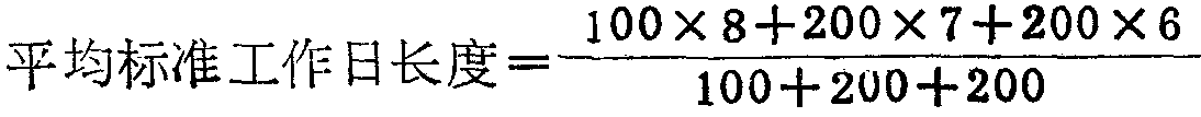 释义 | 平均标准工作日长度两种以上标准工作日长度的平均值。工作时间统计方法之一。例如,某企业有400名职工每日工作8小时,有100名职工每日工作7小时,该企业平均标准工作日长度则为7.8小时。 平均标准工作日长度指企业在执行多种标准工作日长度的情况下,按算术平均数计算出来的标准工作日长度。平均标准工作日长度的计算方法是,企业中所有执行各种不同工作日长度工人的工作时间总数除以工人总数。例如,某企业有100名职工每天工作8小时,有200名职工每天工作7小时,还有200名职工每天工作6小时,则 |