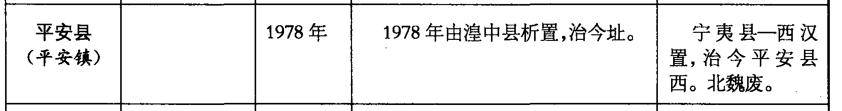 平安县(平安镇)1978年1978年由湟中县析置,治今址。宁夷县—西汉置,治今平安县西。北魏废。