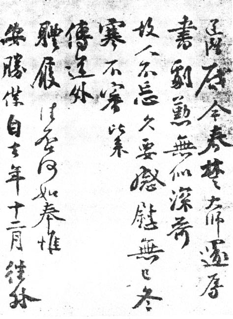 释义 | 与叔通敎授尺牍 【简介】: 宋·道潜书。纸本。纵27.5cm。刊于日本《书道全集》(十六)。 【赏析】: 道潜这位诗僧,爲苏轼客,唱和往还,形于翰墨,可以想见这位出家人的才情和风貌,而这幅尺牍更让我们直接寻觅到与其人沟通的地方。《北磵文集》云:“参寥书谨严而疏宕,称其爲人。”这是宋释居简对释道潜的透视。从笔法上看,起、承、转、合循法而行,看似随手挥洒,却有深湛的书学修养。不计结体之大小比例,“啓”、“今”、“春”简直形成了三条左撇的平行线,而且每字结体亦较宽松。而“年十二”三字行笔中笔锋似乎微微延宕,呈波状,无尺牍中大多数字的那种劲利痛快。然而,这一切都是道潜在片刻的挥洒中完成的,尺牍书艺似乎最少造作的必要,一任自然。唯其自然,晋人尺牍那种潇洒风神爱煞无数代书家;也唯其自然,让我们从道潜的尺牍中看到旣谨严而又疏宕的一位宋释的形象。 |