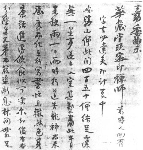 释义 | 与密印禅师法语 【简介】: 宋·圜悟克勤书于建炎二年(1128)。纸本。刊于日本《书道全集》(十六)。 【赏析】: 这是一幅旣让人回味无穷又难以言表的书作。在一般的书法史著作中,这类作品是从来不被重视或乾脆只字不提。然而,它们确是很符合中国书法精神的。用笔爽利、线条富有生命力、点画沉雄、笔势酣畅、气象浑莽,这不能不令人想起被后人誉爲“天下第二行书”的《祭姪稿》以及《争座位帖》。而且,从它传达出的质朴厚实的美感,我们也不难悟到圜悟书法的另一面:即广泛吸取了六朝以来写经文字中的营养,因而深深地打上了僧书的烙印。不仅如此,在禅宗中,他还被奉爲“宗门第一人”,可见其功力之出类拔萃。 |