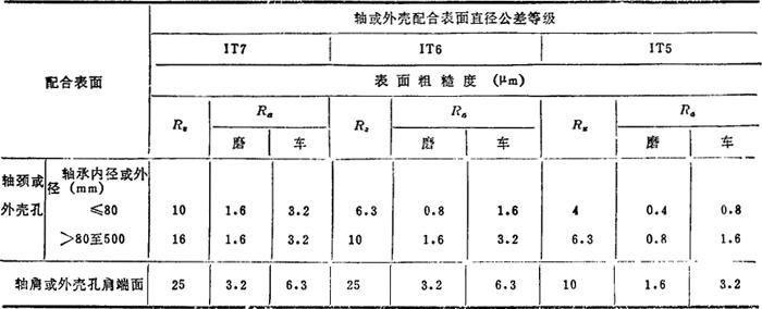 与轴承相配表面的形位公差和表面粗糙度分别见表4.10-43~4.10-47。