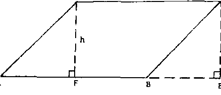 释义 | 平行四边形的面积公式 平行四边形的面积公式Pingxing sibianxing de mian ji gongshi平行四边形的面积等于它的底和高的乘积。如图1中, 平行四边形ABCD, AB是底,CE、DF是底AB上的高, 如果底和高分别用字母a和h表示, 则平行四边形的面积S=ah。(利用公式计算平行四边形的面积, 注意底和高要相对应。 图1 平行四边形面积的计算公式教学可分两步进行。第一步由数方格的方法求出平行四边形的面积。先在方格纸或画有方格的小黑板上画出一个平行四边形,如图2。指出这个平行四边形长7厘米, 宽5厘米。要知道它的面积是多少平方厘米, 可以用面积单位来量。假设图中每格的面积是1平方厘米。然后让学生数出这个平行四边形的面积是多少平方厘米 (不够1格的按半格算)。数后指出,用这样的方法求平行四边形的面积既不方便又不精确。因此,要寻找一种既简便又准确的计算方法。第二步, 引导学生观察图3, 从面积、底、高等几个方面,找出平行四边形与长方形之间的关系。启发学生把平行四边形转化为长方形。如图4, 顺着平行四边形的高把左边的一块三角形割下,补在右边,就得到一个与平行四边形面积相等的长方形。这个长方形的长就是平行四边形的底, 宽就是平行四边形的高。∵长方形的面积=长×宽, ∴平行四边形的面积=底×高。 ![]() 图2 ![]() 图3 ![]() 图4 ☚ 长方形的面积公式 三角形的面积 ☛ |