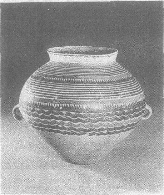 释义 | 平行波浪纹彩陶壶 平行波浪纹彩陶壶新石器时代马家窑文化半山类型。1975年甘肃省康乐县杨家楞出土。此壶敞口、短颈、溜肩、鼓腹,半环形耳安于腹中部靠下。壶身以红、黑彩绘三层纹饰,每层之间以锯齿纹相隔。第一、二层为平行线纹;第三层为波浪纹。彩绘用慢轮旋画,笔道匀称,色泽搭配协调,整齐之中富于变化,是彩陶器中的优秀之作。半山彩陶见“彩陶罐”条目。 ☚ 菱格连弧纹彩陶罐 人面纹彩陶壶 ☛ |