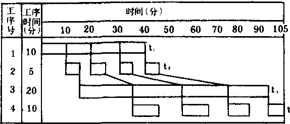 释义 | 平行移动方式劳动对象在工序之间移动和工序之间在时间上衔接的一种时间组织方式。一批零部件在上道工序每加工完一件以后,就立即送往下道工序去加工,使一批零部件能同时在两个或两个以上的工序平行加工。这种方式生产周期最短,但在前道工序时间长,后道工序时间短的情况下,出现等待空闲时间,这些等待空闲时间很零碎,不能充分利用。如图示: (平行移动方式图) 参见“顺序移动方式”、“平行顺序方式”。 |