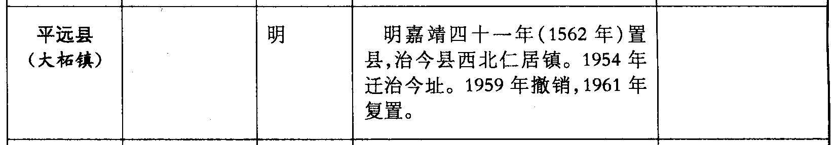 平远县(大柘镇)明明嘉靖四十一年(1562年)置县,治今县西北仁居镇。1954年迁治今址。1959年撤销,1961年复置。