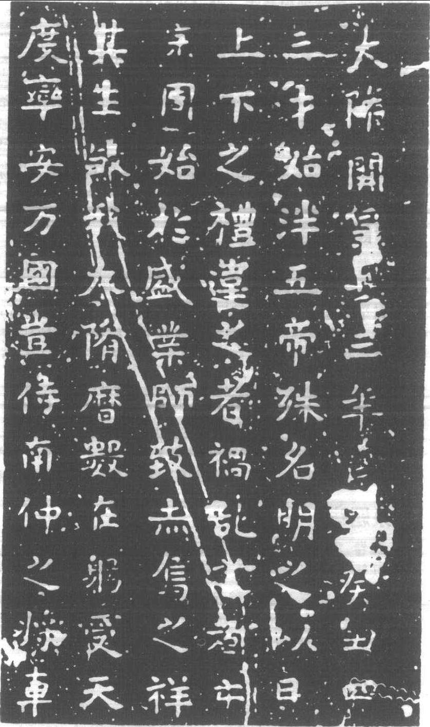 释义 | 平陳紀功頌隋·開皇十三年 (593) 刻。撰、書者未詳。碑陽正書二十二行,行三十二字。碑陰四列 (六行、二十一行、二十四行、十二行)。今存山東泰安。文誅伐陳,擬文帝罪陳之詔。汪鋆考證碑文中異字,論其書曰:“碑書遒麗工整,為隋刻極佳品。”第八行“晉王”之“晉”字未泐者為舊拓本 平陳紀功碑 (局部) |