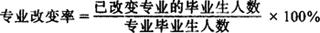 释义 | 专业改变率 反映大专院校、中等专业学校或职业技术学校具有专业学历的毕业生人数、从事工作时,因某些原因而改变其专业的人数之比,是反映学用一致程度的一种评价指标。公式为: 从教育的投资效果来看,专业改变率越大,则教育的投资效果差,反之则高 |