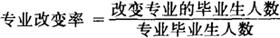 一定时期内大专院校、中等专业学校、技工学校的毕业生参加工作后改变学习专业人数占专业总人数的比。专业改变率的公式是: