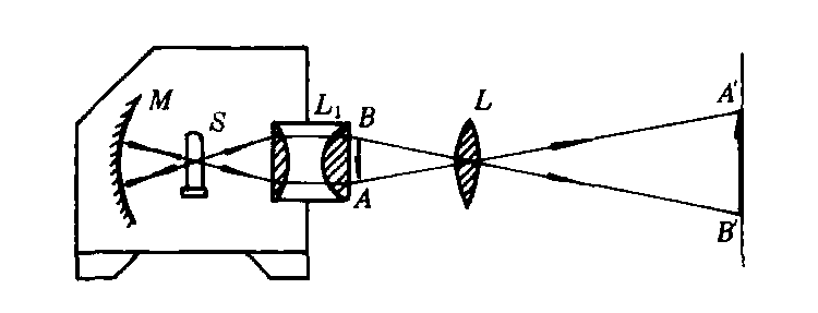 释义 | 幻灯机 幻灯机Huandengji根据凸透镜成像原理制成的用来放映图片的光学仪器。它主要由镜头、光源、聚光器、反光镜等部分组成。镜头为一个凸透镜。光源是功率较大的白炽灯或弧光灯。聚光器又称聚光镜,是由一对直径很大、焦距较短的平凸透镜组成的。反光镜是一个凹面镜。幻灯机有透射式和反射式两种。 反射式幻灯机可以放映不透明的图片,其光路如图所示。图片放在平板P上,从光源发出的光照射到图片上,经反射后射到平面镜M2上,再经M2的反射和镜头L的折射, 在幕上成一个放大的实像。 有些幻灯机既可以放映透明的图片, 又可以放映不透明的图片,称为两用幻灯机。幻灯机所用光源 较强,机内温度较高,为了不致损坏图片和其他器件,机内常常装有一个小风扇, 用来降低机内的温度。 ☚ 照相机 电影机 ☛ 幻灯机slide projector 幻灯机slide projector 幻灯机slide projector |