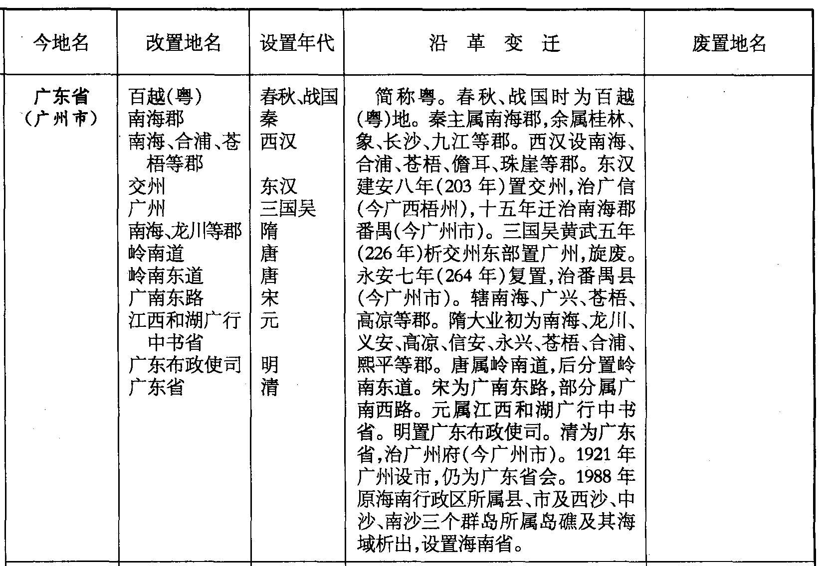 简称粤。春秋、战国时为百越(粤)地。秦主属南海郡,余属桂林、象、长沙、九江等郡。西汉设南海、合浦、苍梧、儋耳、珠崖等郡。东汉建安八年(203年)置交州,治广信(今广西梧州),十五年迁治南海郡番禺(今广州市)。三国吴黄武五年(226年)析交州东部置广州,旋废。永安七年(264年)复置,治番禺县(今广州市)。辖南海、广兴、苍梧、高凉等郡。隋大业初为南海、龙川、义安、高凉、信安、永兴、苍梧、合浦、熙平等郡。唐属岭南道,后分置岭南东道。宋为广南东路,部分属广南西路。元属江西和湖广行中书省。明置广东布政使司。清为广东省,治广州府(今广州市)。1921年广州设市,仍为广东省会。1988年原海南行政区所属县、市及西沙、中沙、南沙三个群岛所属岛礁及其海域析出,设置海南省。
