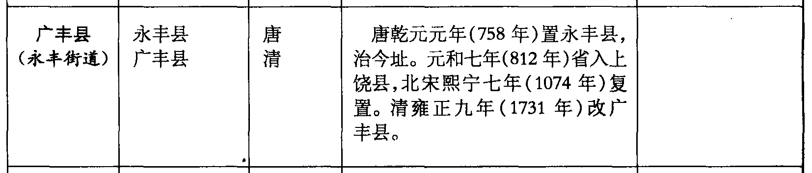 广丰县(永丰街道)永丰县广丰县唐清唐乾元元年(758年)置永丰县,治今址。元和七年(812年)省入上饶县,北宋熙宁七年(1074年)复置。清雍正九年(1731年)改广丰县。