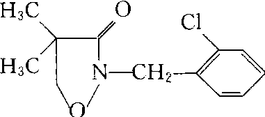 广灭灵clomazone又称异恶草酮。有机杂环类内吸、选择性除草剂。化学名称:2-(2-氯苯基)甲基-4,4-二甲基-异恶唑烷-3-酮。化学结构式如下。原药为淡棕色黏稠液体,密度1.192(20℃),沸点275.4℃,熔点25℃。25℃时蒸气压191.98×10-4pa,可溶于水,易溶于氯仿、甲醇、二氯甲烷、庚烷、乙腈、甲苯、丙酮、二甲苯等有机溶剂。耐光照,pH4.5~9.25间较稳定。可由根和幼芽吸收,向上输导到叶部,通过抑制体内异戊二烯化合物合成,抑制叶绿素和胡萝卜素的合成。大豆能将其迅速代谢而不受害。适用于大豆,也可用于花生、马铃薯,防除稗草、马唐、狗尾草、马齿苋、豚草、藜、蓼等一年生禾本科杂草和阔叶杂草。播前混土或播后芽前使用。土壤中的生物活性可持续6个月以上.当年秋季后茬不宜种禾本科作物。对人、畜低毒,大鼠急性口服LD50 1 369(雌)~2 077(雄) mg/kg,兔急性经皮LD50>2 000 mg/kg,大鼠急性吸入LC504.85 mg/L。对眼有刺激,对鱼、鸟类低毒。