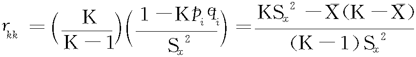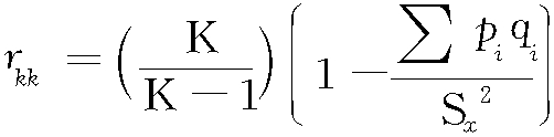 库德—理查逊公式分析题目内部一致性,以估计信度的一种方法。由库德(Kuder)和理查逊(Richardson)于1937年提出。包括K—R20和K—21两个公式。前者为  其中r为信度系数,K为测验所包含的题目数,pi为题目i的通过率,S2为测验总分的变异数。该公式是对斯皮尔曼-布朗公式的一种发展。一般适用于项目的答案有正误之分或其他非连续反应变量的测验。如果各题目难度相近,则可用K—R21公式 其中X是测验总分的平均数,K和S2、R含义与K—R20公式相同。此式较为简单,但求得的信度系数有低估的倾向。 |