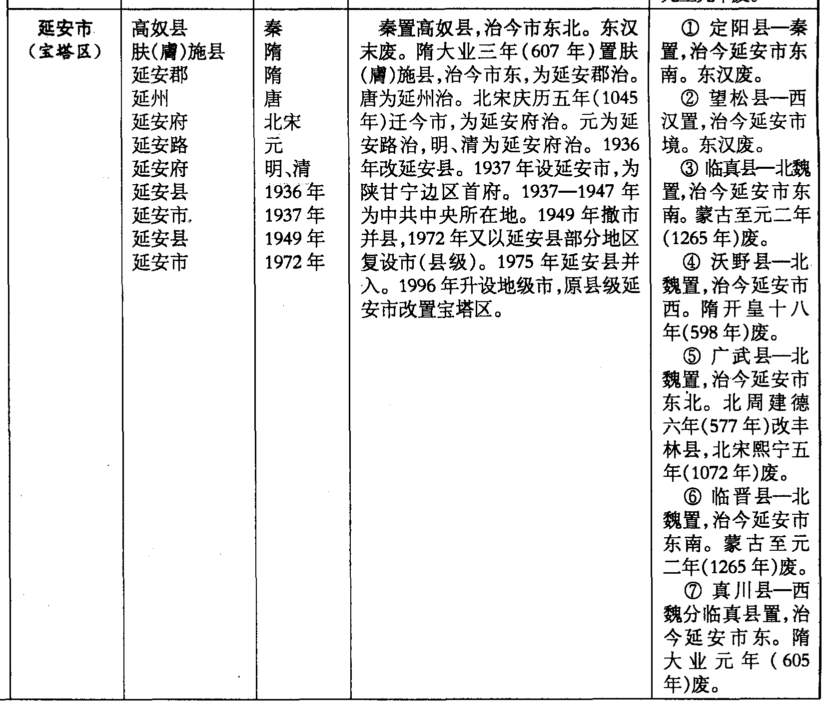 ❼ 真川县—西魏分临真县置,治今延安市东。隋大业元年(605年)废。