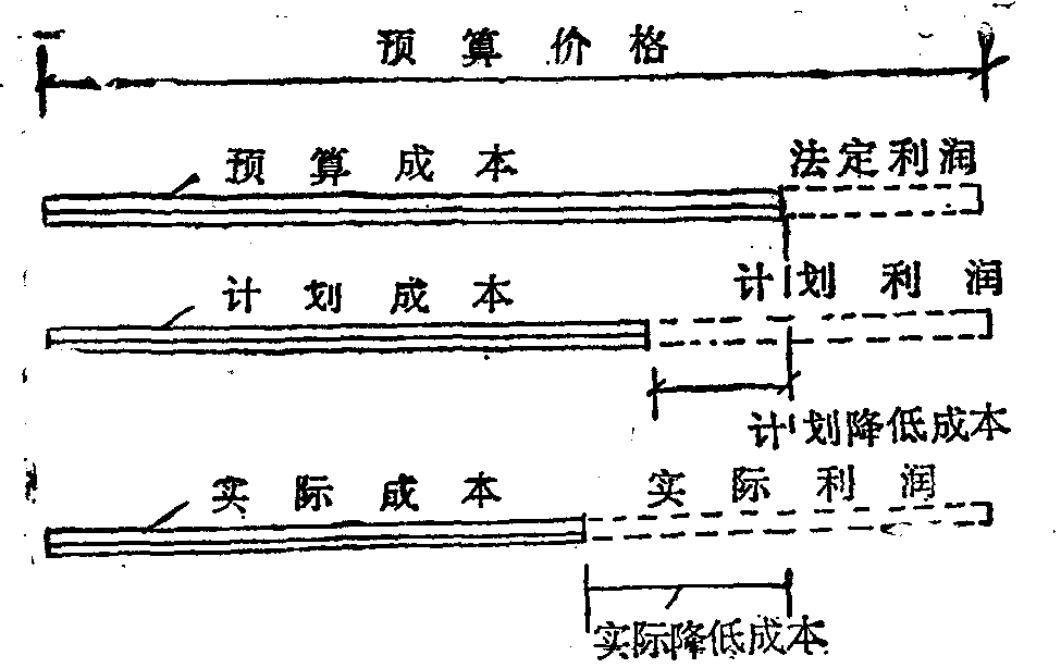 对建筑业利润进行预先测定的工作。建筑业利润预测关系到企业在一定时期内奋斗目标,是其一切经济活动的依据。对利润进行预测,必须研究影响利润高低的建筑产品的预算价格,预算成本,计划和实际成本利润之间的依存关系,如下图所示:
