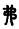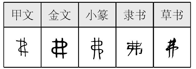 弗 甲骨文; 金文; 篆fú[像水煮開沸騰的樣子。(《説文》:“弗,矯也。從丿(piě),從乀(fú)(亦稱捺),從韋省。”弗,像熱汽向上蒸騰,縈回繚繞。擬爲“沸”本字。沸水燙手不能摸。或人被沸水燙後,連連甩手,口中連喊:“弗!弗!”擬此情此景,即“弗”字的由來。引申借用爲“否定”“不能”。於是另造“沸”字。)] 《詩經·邶風·燕燕》:“瞻望弗及,泣涕如雨。”(遠遠瞻望無倩影,傷心哭泣泪如雨。) [春秋] 左丘明《左傳·桓公十年》:“秋,公會衛侯於桃丘,弗遇。” 《中庸》:“有弗學,學之弗能,弗措也。”(有未學過的去學。未學到手,便不甘休。) [西漢] 司馬遷《史記·孝武本紀》:“朕以眇眇之身承至尊,兢兢焉懼弗任。”(我以小小身軀,繼承無上的皇位,總是兢兢業業,唯恐不能擔此大任。) *弗fú5画 乛部 〈书〉不: ~许|自叹~如。 弗 ☚ 乂 部 ☛ 弗★常◎常
