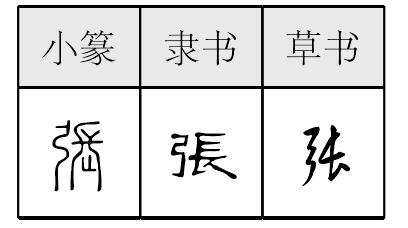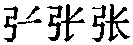 【提示】长,4画,起笔是撇,不是竖。第三笔竖提上下贯通,不是一竖、一提两笔。不要错写成长。 *张(張)zhāng7画 弓部 (1) 拉开弓弦: ~弓搭箭|剑拔弩~。 (2) 绷紧: 紧~|一~一弛。 (3) (使合拢或紧缩的东西)分开;展开;放开: ~嘴|~开翅膀。 (4) 扩大;夸大: 夸~|扩~|铺~浪费|虚~声势。 (5) 放肆: 嚣~。 (6) 看;望: 东~西望。 (7) 商店开业: 开~。 (8) 设置;铺排: ~灯结彩|大~筵席。 (9) 量词。用于可以张开、闭拢或卷起的东西,也用于人脸或有平面的东西: 一~纸|两~画|一~嘴|一~脸|三~桌子。 (10) 星宿(xiù)名,二十八宿(xiù)之一。 张張zhāng战国以来的形声字。从弓,长(長)声。声母演变如长胀涨例,长本也有涨音。本义是把弦绷在弓上。引申为开弓,拉弓弦。又引申为展开,开。如:纲举目张|张嘴|张牙舞爪。又引申为扩大,夸大。如:虚张声势。又指放纵,无拘束。如:乖张|嚣张。组词如:张罗|开张(指开始营业)。又引申为铺排陈设。如:张灯结彩。转义为看,望。如:东张西望。又转为量词。如:一张弓|两张纸。又为星名,是二十八宿之一。 张張★繁◎常★常