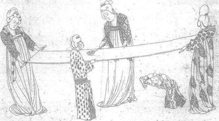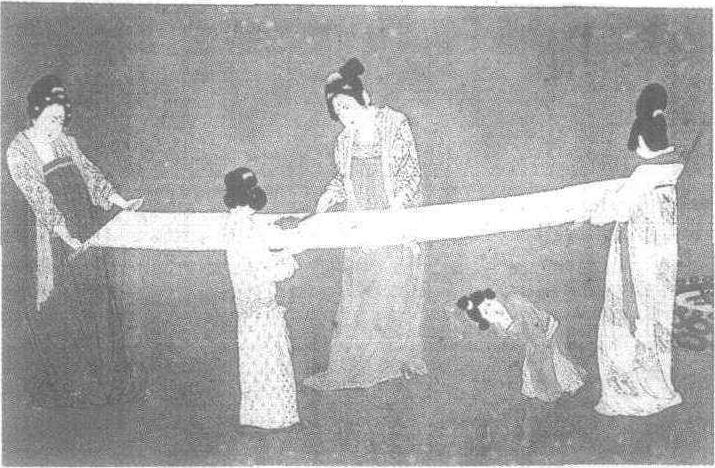 释义 | 张萱《捣练图》 张萱《捣练图》长卷,绢本,设色。此图描绘了宫中妇女加工白练的过程。“练”是丝织品的一种、织成时质地硬,须煮熟后再用杵捣柔软,然后熨平使用。全卷人物分三组,分别表现了捣练、织修、熨烫的劳动情景。开卷一组四个妇人中三人执杵捣练,另一个人扭身挽袖,把观者视线引到第二组: 一妇女坐在毡席上,双手伸开路线,另一妇女坐在对面,织修白练,一女童正挥扇煽炉中的火炭。第三组中的四个妇人中,两人对立拉直白练,一人在中间托练,一人执熨斗熨烫。一个小女童钻到了白练底下,躬背仰首向上观望。张萱非常善于捕捉劳动中的微小细节。比如那煽火炭的女童,身体向后仰向外转,似乎是在躲避炭火的烟灰; 那配合熨烫的妇女,由于用力拉直白练,身体重心向后,上身后仰,动态极为生动。还有那仰首上观的女孩,不但把小孩天真好奇的情态表现了出来,也使得滞板的劳动情景增添了活跃的气氛,使整个画面张弛有度,富有生活情趣。 张萱 《捣练图》 ☚ 张萱《虢国夫人游春图》 周昉《簪花仕女图》 ☛ |