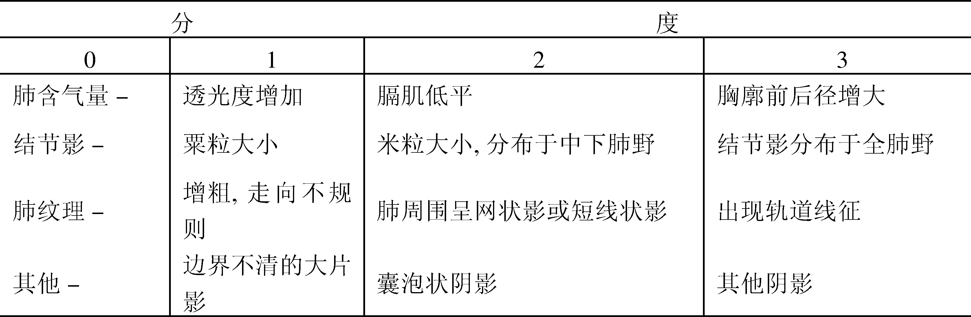 X线检查:胸片或CT可见因呼吸细支气管以下的气道及肺泡腔膨胀所致的含气量增加和膈肌下降的征象。由于呼吸细支气管与邻近肺泡管壁广泛性炎症细胞浸润、泡沫细胞集聚以及纤维化的存在,胸片上常出现直径在5mm以下,边界不清,呈小叶中心性分布的弥漫性结节状阴影,并有分叉状线条影与其相连。以下肺野为明显。此为细支气管扩张,管内充满黏液的表现。部分呼吸细支气管至小叶支气管柱状扩张及管壁增厚较为严重的患者,则可出现轨道线(tramline)征。DPB的胸部X线表现及分度见下表。
