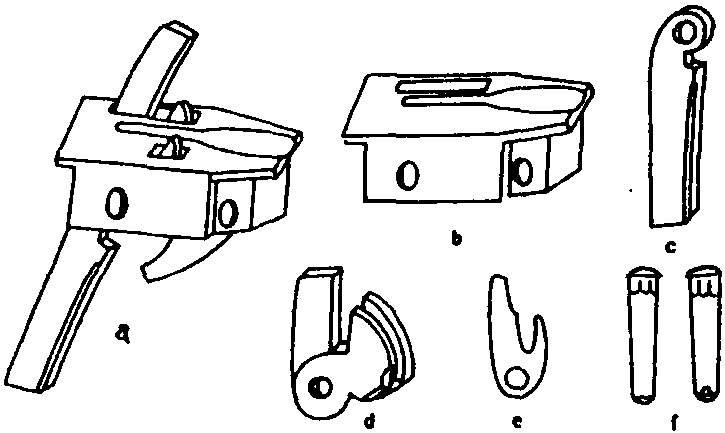 释义 | 古代名物 > 武備類 > 冷兵器部 > 抛射器 > 弩機 弩機 nǔjī 弩的發射裝置。銅質。由懸刀、望山、牙、鈎心、鍵等組成。牙以卡弦,望山以瞄準,懸刀控制牙,鈎心聯接牙和懸刀,鍵固定各部。張弦時,拉動望山,牙昇起,帶動鈎心下齒卡住懸刀,在懸刀控制下的牙即扣住弓弦及弦上之箭。射手通過望山瞄準目標後,扳動懸刀,牙失去控制而下縮,弓弦回彈將箭射出。漢弩機加裝銅鑄機匣,稱爲部,使弩機各部聯接更牢,可承受更大的張力。始見於戰國,盛於漢晉。火器出現後,弩廢止,弩機亦消亡。《吕氏春秋·察微》:“夫弩機,差以米,則不發。”宋·沈括《夢溪筆談·器用》:“〔海州〕人家穿地得一弩機,其望山甚長,望山之側爲小矩,如尺之有分寸。”參閲清·阮元《小滄浪筆談》卷三。 a全形 b郭 c懸刀 d牙 e鈎心 f鍵 弩機分解圖 |