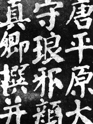 【作品赏析】: 碑颜篆书“汉太中大夫东方先生画赞碑”。 刻于天宝十三年(754)。晋夏侯湛撰文。 这是颜真卿四十五岁时写的,大楷字径约十厘米。平整峻峭,深厚雄健,气势磅礴。苏轼论曰:“鲁公平生写碑,唯《东方朔画赞》为清雄,字间栉比而不失清远。其后见逸少本,乃知鲁公字字临此本,虽大小相悬而气韵良是。”(《东坡题跋》卷四)。宝晋斋本《东方画赞》,传为王羲之小楷。鲁公变小字为大字,易清朗俊秀为刚劲雄强,应说是师古而不泥古。 假如说比此碑早二年的《多宝塔感应碑》还比较清秀,与后来的颜书面貌有所不同的话,那末,此碑已初具后来颜书的规模。此碑在研究颜书的发展上有重要意义。。  唐 颜真卿 楷书 36行 行30字 在山东陵县 |