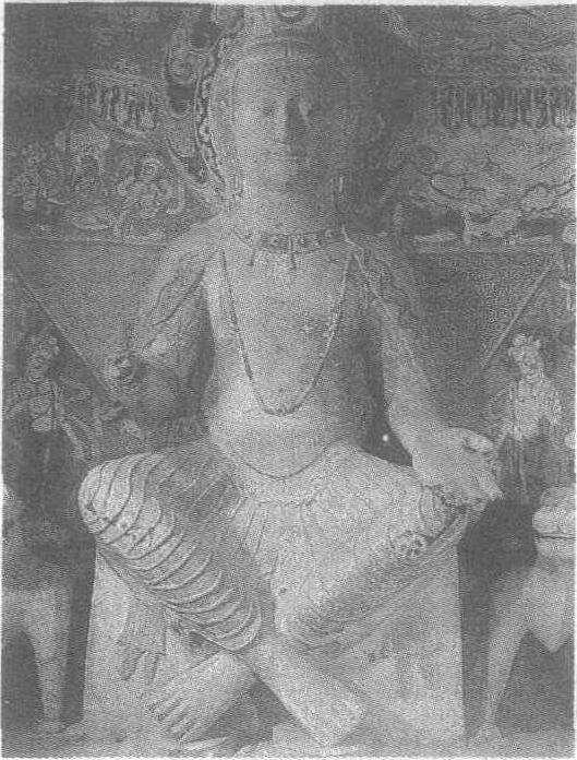 释义 | 彩塑交脚弥勒菩萨像 彩塑交脚弥勒菩萨像北凉。高335厘米。甘肃省敦煌县莫高窟第275窟西壁前正中塑像。此尊弥勒造像是莫高窟早期所存最大的弥勒像,面形丰圆,眉目疏朗,头戴三珠宝冠,颈佩璎珞,上身裸露,腰束羊肠裙。左手作与愿印,交脚坐于狮座之上。整个塑像比例匀称,其造型及双狮座均明显受犍陀罗艺术影响。但此尊弥勒菩萨的塑造又有中国的独创性。古印度佛教艺术中,佛的坐姿仅有结跏趺坐和倚坐两种形式,此像的交脚坐式则是佛教传入中国后的一种特殊模式。有人认为它出现于这个时代反映的是鲜卑族拓跋氏贵族的一种坐式礼仪。 ☚ 莫高窟 彩塑佛像 ☛ |