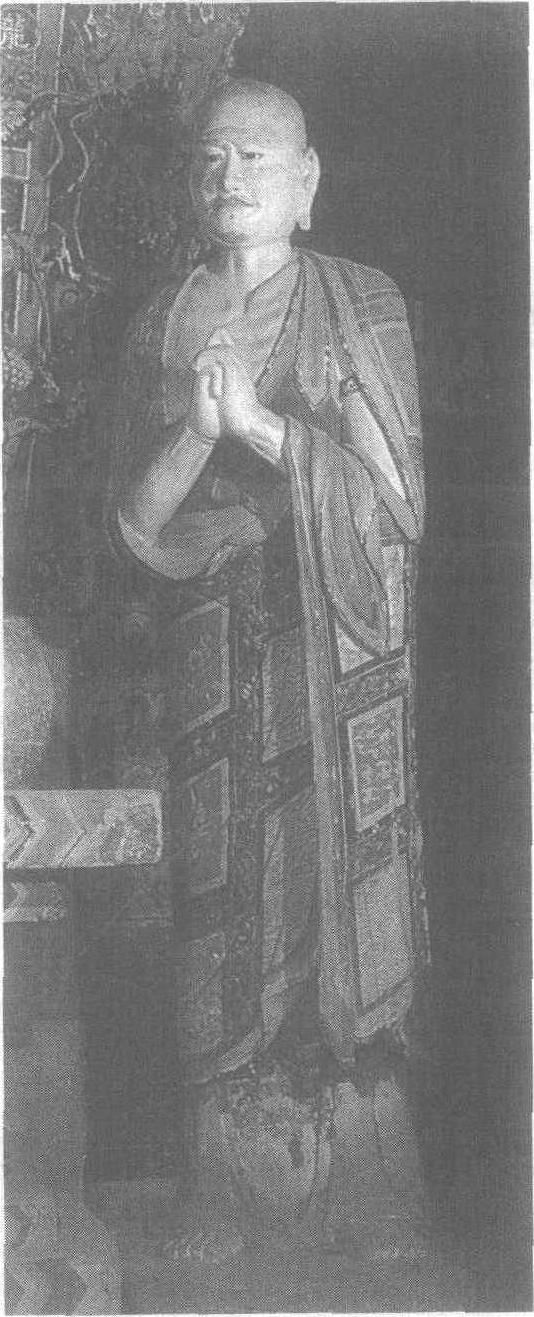 释义 | 彩塑弟子立像 彩塑弟子立像五代北汉天会七年(公元963年)。迦叶高288厘米,阿难高309厘米。山西省平遥县镇国寺万佛殿内塑像。寺在平遥县郝洞村,始建于五代。万佛殿居中心,虽经后世修葺,但原风仍存。殿内塑有佛、弟子、菩萨、金刚及供养像等11尊,为中原寺庙仅存的五代塑像。居释迦左侧者为年长弟子迦叶,身披袈裟,袒胸,筋骨毕露。双手合于胸前,眉头微锁,目光凝视前方,具有威严之状。释迦右侧为年轻的阿难,身材高大,穿戴整齐,双手捧于腹前,容貌英俊,神态温和而安详。除此立像塑造出色外,殿中的菩萨像也体型健美,肌肉丰满,具有质感,是优秀之作。 ☚ 彩塑菩萨像 南涅水石刻造像 ☛ |