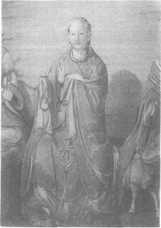 元。通高170厘米。山西省晋城市玉皇庙内塑像。该庙位于晋城东13公里处的府城村,始建于北宋熙宁九年(公元1076年),以后各代曾予重建或扩建。西庑两殿有元塑“二十八宿星君”“十二岁星辰”。虚日鼠为二十八宿星君之一。形象取自中年贵妇,身穿宽袖绿袍,衣缘以精细的仙鹤、云纹为饰,大红披宽松随意地搭于肩上。秀发后拢,长可及肩(类似当今的披肩发)。鹅蛋形脸微鼓,额宽智足,五官纤细,目光和善。右手托鼠,左手近鼠作保护状。此塑为“二十八宿星君”中引人注目的作品之一。
