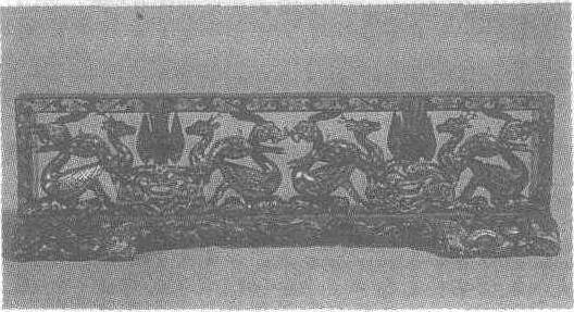 释义 | 彩绘描漆小座屏 彩绘描漆小座屏战国。高15厘米,宽51.8厘米。1965年湖北省江陵望山楚墓出土。湖北省博物馆藏。木质,长方形。边框绘以红、黄、绿、黑等色交织而成的卷云纹和几何纹。底座及屏心透雕、浮雕鸾凤、鹿、蛇、蟒、蛙、鸟等纠结缠绕,交互穿插的禽兽53个,其上绘以红、黑、黄、绿、褐、金、银等色,构成一组生动传神的弱肉强食,适者生存的立体图案。此座屏雕刻精美,色彩丰富,是战国漆器的佳作。 ☚ 彩绘漆鞘 彩绘虎座鸟架悬鼓 ☛ |