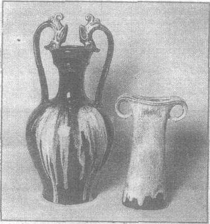 指表面施以多种彩釉的陶器而言,可以分为高温彩釉陶和低温彩釉陶。高温彩釉陶也称为花釉,是由两种以上的釉结合而成的,烧成温度在1 250℃以上,釉色呈现丰富自然的纹理变化。低温彩釉陶多为两次烧成,先以1 000—1 100℃温度素烧坯体,施釉后再经900℃左右的温度烧成,比较典型的是唐三彩陶器,其色彩艳丽,流动自然,具有很强的装饰效果。彩釉陶的共同特点是由色彩变化丰富的釉色和光泽作用完成装饰效果,外观更加美观,不仅增加了表面的光洁,还可以防止陶器渗水,也加强了实用性。