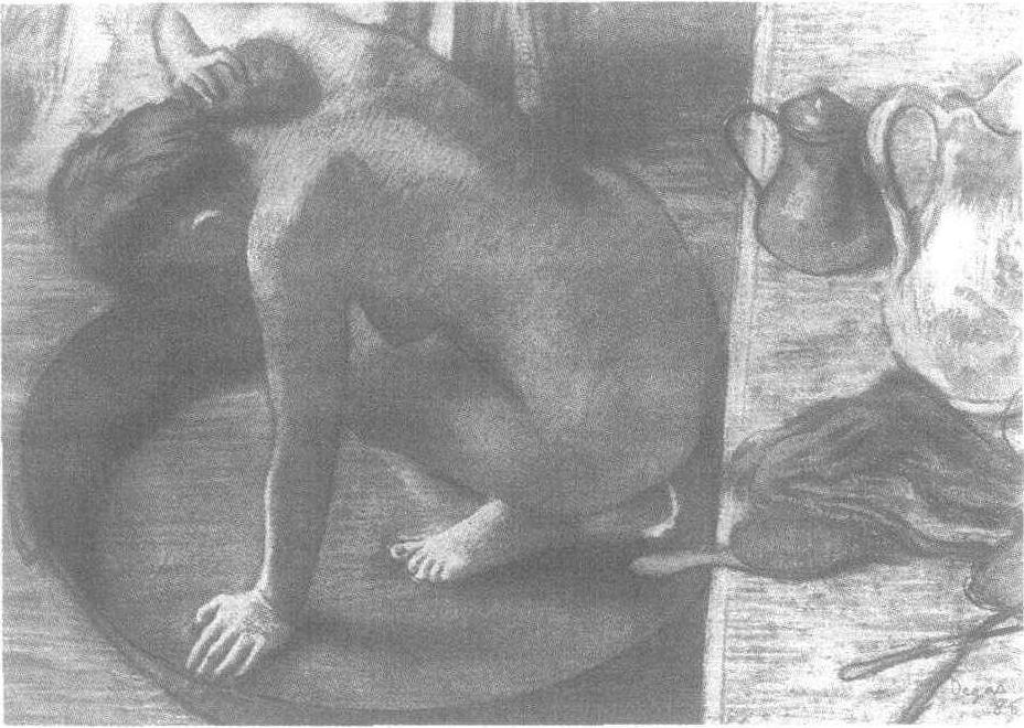 释义 | 德加《浴》 德加《浴》这幅画应用了由上往下的视点,构图呈几何形: 浴盆和蹲着的女人都以明确的轮廓线衬托出来,变成一个方块中的圆圈,剩下的长方形部分画着一个非常倾斜的架子,倾斜得几乎与画面平行。在这个架子上画着两个水壶,那小水壶的曲线正好与大水壶的把手连在一起,它们之间也不合近大远小的比例。这种 “两度空间”和 “三度空间”,以及表面和深度的紧张关系,德加几乎将它强调到了饱和点,只是在画面闪亮发光的颜色上,才可以说是印象主义的。 浴 德加 德加晚期画风愈加简洁明快有如速写。这或许与他日渐赢弱的视力,或许与画风本身的发展有关。大概个个大画家到了晚年,往往练就出一手大胆而单纯的风格,好似要用寥寥数笔和几点颜色,以摘述毕生经验。而德加,还得加上他喜欢重复同一主题,每 一次都使得形式更加练达、完整、真实。这无疑是长期苦心雕琢形式的结晶。 ☚ 雷诺阿《乘游艇人们的午餐》 塞尚《苹果与橙子》 ☛ |