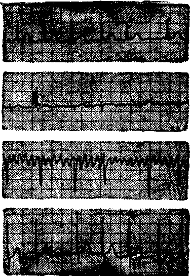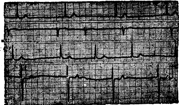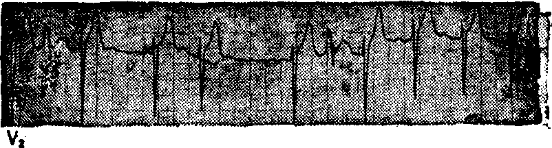 P波均消失,代之以形态、振幅和间距不等的心房颤动波(f波),心室律绝对不规则。由于受心房颤动波的影响,T波振幅及形态亦不一致。 图2 心房颤动伴高度房室传导阻滞 P波消失代之以f波,心室率慢,平均每分钟40次,Ⅱ和V4导联中心室律相对规则,符合心房颤动伴高度房室传导阻滞。 图3 心房颤动伴室内差异传导 P波消失,代以f波,心室律不规则。第二个和第七个QRS波群为室内差异传导,均发生在长间歇后提早的心搏,其后无代偿间歇。 心律快而不规则,心音强弱不一,并有脉搏短拙者应考虑心房颤动。如心电图中显示有f波,诊断可确立。合并心室内差异传导者须与室性异位搏动相鉴别,前者特点为: ❶畸形的QRS波群多发生在长间歇后提早的心搏时,往往呈右束支传导阻滞型,起始向量与正常下传者相同; ❷无固定配对间期,其后也无代偿间歇; ❸心室率偏快。预激综合征并发心房颤动时须与室性心动过速鉴别,但前者心室律不规则,如能辨认出预激波有助于判别。合并完全性房室传导阻滞或非阵发性交接处性心动过速时,心室律变为规则,但根据f波的特征不难作出诊断。病因治疗极为重要。如甲状腺功能亢进,急性心肌炎等未能控制,心房颤动也难于消除。 (1) 心房颤动的处理:偶发的心房颤动,心室率如不过快,可嘱暂时休息,给予适量镇静剂,无须特殊治疗。心室率快并已有器质性心脏病或心力衰竭者,宜用洋地黄类药物控制心室率,使休息时心率每分钟60~70次,轻体力活动时不超过90次。给药途径与速度根据症状轻重和心率而定,心率减慢后改用维持量(见“心力衰竭”条)。单独应用洋地黄类药物不能满意控制心室率时,可加用心得宁或心得安等β受体阻滞剂,或异搏定。此二类药物均有减弱心肌收缩力的作用,应注意掌握剂量。少数患者用洋地黄后可转为窦性。对有转复窦性心律的指征者,可考虑转复心律。 (2) 心房颤动的转复: 转复为窦性心律能增进心搏量,并可减少栓塞机会。下列情况应予考虑: ❶心房颤动持续一年以内,心脏病变较轻或已作过二尖瓣分离术者; ❷二尖瓣手术后发生的心房颤动,经2~3周未消失者; ❸甲状腺功能亢进已控制而仍有心房颤动; ❹近期有栓塞史者。以下情况不适于转复: ❶心房颤动而心室率缓慢者 (除外药物影响); ❷心房颤动已持续2~3年或更久者; ❸心脏明显增大或有明显心力衰竭者; ❹易复发者。方法: ❶电复律(见“心脏电复律”条); ❷药物复律,主要用奎尼丁。心室率过快或有心力衰竭者应先予控制或纠正。近期有栓塞史者宜先用抗凝剂6~8周。开始先给奎尼丁0.2g,每2小时一次共5次。每次给药前测心率和血压,早晚各记录心电图一次。若未转复亦无毒性反应,可重复上述剂量一日。如仍无效,每隔二日增加分剂剂量0.1g,每次分剂剂量最大不超过0.4g。如治程中转为窦性应即改用当时分剂剂量,每6小时一次,以后可试用每8~12小时一次维持数月或更久。用奎尼丁无效或出现心率过缓、Q-T间期延长(>0.50 s),QRS时限延长25%以上,血压显著下降,或出现室性异位心律,应立即停药。QRS时限明显增宽者给以克分子乳酸钠溶液静脉注射,出现室性异位心律可皮下注射阿托品,Q-T间期显著延长伴扭转型室性心动过速发作者,静脉滴注异丙基肾上腺素。奎尼丁无效或有毒性反应可改用普鲁卡因酰胺口服,每2小时一次,每次0.5g,共5次,如1~2天无效、将单次剂量递增为0.75~1g。有效后改为每6~8小时一次,如单次剂量达1 g而仍无效即停用。近年来用乙胺碘呋酮200~600mg,每日二次口服复律,部分病人获得转复,有效后给予维持剂量每日200mg。 (3) 心房颤动复律后常需用药预防复发,以奎尼丁为首选,其次为普鲁卡因酰胺。少数病人如甲状腺功能亢进控制后或二尖瓣手术后用药1~2周,可以停药,其他患者须长期维持。 ☚ 心室紊乱心律 心房扑动 ☛ 心房颤动 心房颤动atrial fibrillation又称心房纤颤。是房性异位性快速心律失常之一。由于心房各部的传导性和不应期失去同步,房内肌纤维出现不协调的乱颤,其发生机制有异位起搏点学说、环行运动学说、房内多处微折返学说。心电图特点为: ☚ 特发性心室扑动 心室颤动 ☛ |