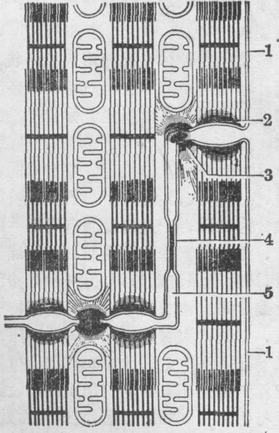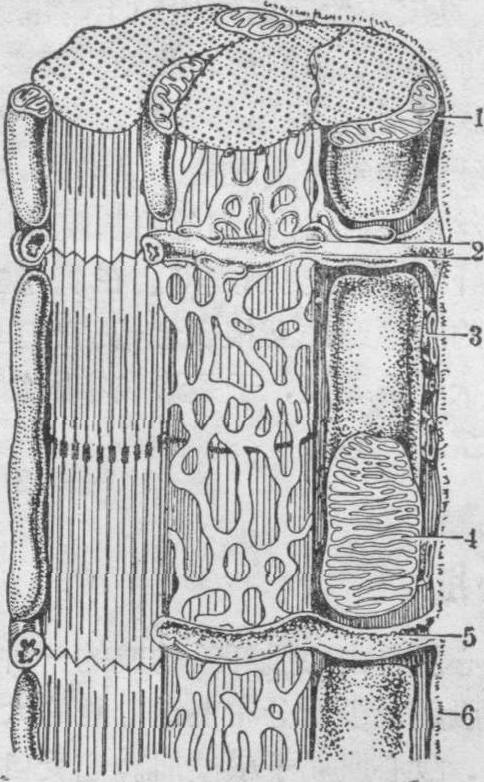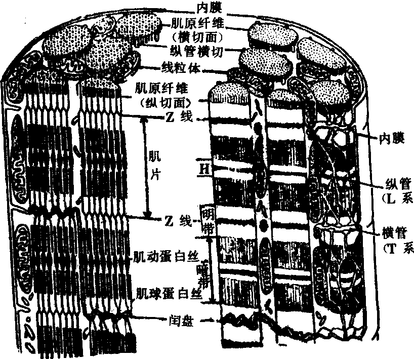 释义 | 心机;心肌◉ 心机xīnjī 名 心思;计谋。〈例〉费尽~/ 枉费~/ 言谈又极爽利,~又极深细,竟是个男人万不及一的。〈近〉心计/ 心思。 心肌xīn jī心脏的肌肉。1924年程瀚章《运动生理·各论》:“病的肥大心脏,终陷于心肌变性。” 循环器官 循环器官心脏:心(心腑;~房;~室;~肌;~包;~尖) 火宫 火脏 黄中 ☚ 器官1 呼吸器官 ☛ 心肌cardiac muscle由分枝短柱状、显横纹,行不随意收缩的心肌纤维构成的一种肌组织。亦属横纹肌。主要分布于心脏。细胞核椭圆着色浅,单或双核中位。肌浆内有大量肌丝束并显横纹,线粒体较其他肌纤维多,近核肌浆内无肌丝,含胞器丰富。肌纤维分枝端端相连,连接处称闰盘。是心脏工作细胞,能自发同步节律性舒缩,持续时间长,不易疲劳。还能分化形成特殊心肌纤维,组成心脏传导系。近年研究认为心房肌细胞尚有内分泌功能。心脏机能活动增强时,心肌纤维数量不增多,但变粗大,称生理性或病理性肥大。成体高度分化的心肌纤维一般不再分裂。 心肌超微结构模式图 1.肌丝的集合体是区域结构 2. 线粒体 3. 横小管开口 4. 横小管 5. 肌质网 6. 细胞膜 心肌 心肌xinji构成心脏的一种特殊肌肉。由心肌纤维组成。分布在心脏的房、室壁上,组成心肌层。肌细胞呈圆柱状,长约30~60微米,粗约10~30微米。细胞间有分枝相连呈网状。相互连接的心肌细胞由闰盘(间板)分界,形成特殊的“间板”横纹。细胞膜又称肉膜,细薄而不明显。细胞核位于中部,通常有一个核仁。核的周围是肌原纤维和肌浆。肌原纤维之间有线粒体、内质网、糖原和脂滴。和骨骼肌细胞一样,肌原纤维也有I带和A带,有H线、M线和Z线,Z线之间叫肌节,也显出明暗相间的横纹。心肌细胞构成心肌组织,心脏是以心肌组织为主构成的。心肌的活动特点是能够自动有节律地收缩,是一种“不随意肌”。有人曾做过这样的实验:剖开活蛙的胸膛,把心脏完整地剪下来,可看到没有神经支配的心脏照样能有节律地搏动一段时间。如果分离出几个活的心肌细胞,可用仪器测出它们在有节律地舒缩。 图483 心肌纤维电子显微镜下的结构(模式图) ☚ 平滑肌 肌肉收缩 ☛ 心肌cardiac muscle系由心肌细胞组成的一种特殊心组织。其构造属于横纹肌,但不受意识支配,故又属于不随意肌;构成心壁的主要成分,为心脏收缩的物质基础。由于房室内压不同,故心肌厚度亦不同,心室肌比心房壁为厚,左心室又比右心室壁为厚。心肌细胞呈分支状,相互连结,并彼此由特殊传导系统网络之,故心肌收缩与舒张呈整体性协调动作。心肌负荷过大时可使心肌组织肥厚,出现代偿性功能增强,久之心肌承受力下降,可发生心功能不全。心肌可因供血不足、营养不良、毒性作用、生物性感染等而发生多种心肌性疾病,在临床上有重要意义。 心肌肌组织的一种。主要由心肌纤维组成。只分布在心脏。光镜下可见肌纤维有明暗相间的横纹。其收缩持久而有节律,不受意志控制,属不随意肌。 心肌肌肉的一种。构成心脏的肌肉层。肌细胞为短柱状,显横纹,有分枝且互相连接成网状,中央有一个细胞核。相邻心肌细胞间的连接结构,称为闰盘,有传导兴奋的重要作用。心肌行有节律而不受意识支配的收缩。故属不随意肌。 心肌 心肌由心肌细胞组成,是构成心壁的主要成份。心肌有横纹,受植物性神经支配,属不随意肌。心肌细胞呈长圆柱状,有分支互相吻合。心肌细胞连接处的肌膜形成阶梯状结构,称闰盘。闰盘对电流的阻抗低,兴奋可以通过它由一个心肌细胞传播到另一个心肌细胞。因此,整个心房和心室可看成是两个机能上相互联系的合体细胞。心肌细胞具有兴奋性、收缩性和传导性。当心房肌或心室肌接受传导系统传来的兴奋时,兴奋可通过闰盘迅速地从一个心肌细胞传至另一个心肌细胞,引起心房或心室所有细胞同步兴奋和收缩,以完成泵血功能。 ☚ 老年心脏的生理特点 心肌的兴奋性 ☛ 心肌cardiac muscle是构成心壁的主要成分,为心脏收缩的物质基础。它属横纹肌,其收缩活动不受意识支配,故称不随意肌。心肌纤维呈圆柱状,有分支。每条肌纤维中只有1~2个核,位于肌纤维中央。肌纤维末端以闰盘形式互相连接,但并不互相通连。电镜下可见,粗细肌丝形成的肌原纤维不完整,每个肌节只有一个二联体,肌浆中的线粒体丰富。 心肌 心肌心肌的肌细胞有两种,一种是收缩细胞,另一种是兴奋与传导细胞。本条目主要介绍前者。心肌细胞亦显横纹,在结构及功能上与骨胳肌大体相似,但具有一定特点; 与骨胳肌相同之处可参见有关条目。 图1 心肌细胞超微结构模式图 (3) 原肌球蛋白: 骨胳肌的原肌球蛋白由两种亚单位(α及β链)形成双螺旋。心肌的原肌球蛋白从氨基酸组成、电泳性质、类晶结构及免疫学性质等几方面来判定都只有一种与骨胳肌原肌球蛋白α链相同的亚单位,即由两条α链形成双螺旋。一般来说,收缩越慢的肌肉含β链越高。而心肌原肌球蛋白的亚单位与骨胳肌快肌的主要亚单位相同。这一点与肌球蛋白不同。心肌的肌球蛋白在某些性质上(如ATP酶活性)类似慢肌。 (4) 肌钙蛋白: 心肌肌钙蛋白的三种亚单位均与骨胳肌有所不同。TN-C在骨胳肌的快肌和慢肌之间没有差别。心肌的TN-C含量虽与骨胳肌相同,但其氨基酸组成、结合Ca2+的能力(只有3个结合Ca2+的部位)及免疫学性质均与骨胳肌不同。TN-I在骨胳肌的快肌及