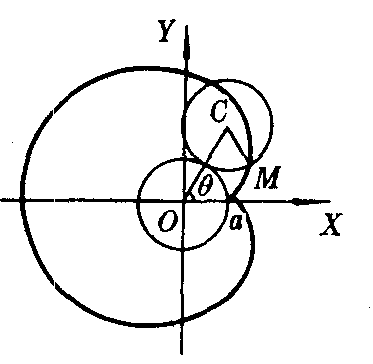 心脏线是蜗线的特例,也是圆外旋轮线的特例:当半径为a的动圆沿着具有相等半径的定圆作无滑动的滚动时,动圆圆周上一点M的轨迹(如图2),它们直角坐标方程是[(a-x)2+y2-2a(a-x)]2=4a2[(a-x)2+y2],故心脏线是4次代数曲线. ☚ 蜗线 卡西尼卵形线 ☛ 心脏线cardioid |