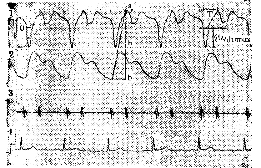 释义 | 心阻抗图 心阻抗图心阻抗图(心阻抗血流图)是一种非侵入性检查方法。被检者安静平卧、于颈根部和胸骨剑突下2cm处安放带状表面电极作为探查电极,距探查电极上下2cm处分别放置二条供电电极,将供电电极与探查电极分别连于双导血流计,通以恒定的高频交流电,将胸腔内随心动周期发生的阻抗变化,输入多导生理描记仪,所记录的电位变化曲线,即心阻抗图。 ![]() 心阻抗图与其他直接法测定心输出量所得数值相近,有一定临床应用价值。 图1 阻抗法的线路示意图 图2 心阻抗图测量心输出量记录图 1.心阻抗第一导数图1Ω/10mm/s 2.心阻抗图0.1Ω/10mm 3.心音图 4.心电图1mV/10mm ☚ 收缩时间间期 颈动、静脉波图 ☛ 心阻抗图 心阻抗图impedance cardiogram, ICG又称“心阻抗血流图”或“阻抗心动图”。根据Kwibicek学说,电流通过生物组织产生阻抗的大小,与组织所含电解质的浓度高低有关,浓度越高,阻抗越小,反之阻抗就大。假设人体胸部组织为一弹性圆筒体,大动脉位于其中,心脏收缩时,大动脉内血液增多,导电能力加强,胸腔阻力减少;反之,心脏舒张时胸腔阻力增大。此种阻抗变化能反映心脏血液动力学的变化,结合同步记录的心电图、心音图和颈动脉搏动图,可测定心输出量、心肌收缩力、外周阻力和血管顺应性等。 ☚ 颈静脉波 左室阻抗图 ☛ |