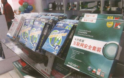个人网络安全产品主要包括反病毒软件、反恶意软件工具、个人防火墙等。 其中,反病毒软件主要指以瑞星、卡巴斯基为代表的综合类杀病毒软件,反恶意软件工具主要指以360安全卫士为代表的专业安全软件。中国个人网络安全市场规模将继续扩大,瑞星、卡巴斯基和360安全卫士的用户覆盖数居前3位。 以360安全卫士为典型代表的专业反恶意软件工具的出现,标志著中国的杀毒软件市场开始走向专业化。这说明个人网络安全产品开始进一步分化,传统的综合类杀毒软件已不能完全应对和解决安全市场恶意软件日益猖獗的局面。 目前,中国市场上主要的个人防火墙产品有:瑞星、天网、诺顿、费尔等;反病毒软件主要有:瑞星、卡巴斯基、金山、江民、诺顿等;反恶意软件工具主要有:360安全卫士、瑞星卡卡、超级兔子、木马克星等。  数码市场上销售的杀毒软件 |