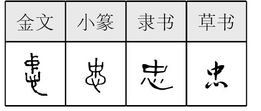 释义 | 忠Zhōng现行较罕见姓氏。今山西之大同、阳泉、长治、临汾,江西之新余,广东之吴川等地有分布。汉族姓氏。《续通志·氏族略》亦收载; 《姓氏考略》亦载并注称: “以谥为氏,或以地名为氏。” 忠zhōng忠誠。東方朔《答客難》:“然悉力盡忠以事圣帝,曠日持久,官不過侍郎。” 忠 忠忠诚、忠贞,一种美好的道德品质。《论语·学而》: “曾子曰:‘吾日三省吾身; 为人谋而不忠乎?与朋友交而不信乎?传不习乎?’”清全祖望《梅花岭记》: “忠义者,圣贤家法,其气浩然,长留天地之间。”我们今天提倡的忠,自然与旧时的忠有本质的不同,但忠依然是美德之一。毛泽东《蝶恋花·答李淑一》: “寂寞嫦娥舒广袖,万里长空且为忠魂舞。” (芳) ☚ 爱国 劲草 ☛ 忠读音zh·ong(-),为ong韵目,属eng—ong—iong—ueng韵部。陟弓切,平,东韵。 上一条: 中 下一条: 盅 ![]() ![]() ![]() ![]() 忠zhōng❶尽心尽力 忠赤诚,尽心竭力:~实︱~诚︱~勇︱~烈︱~贞︱~直︱~厚︱~顺︱~心︱~言︱~告︱~良︱~孝︱~臣︱~仆︱效~︱尽~︱愚~︱矢~︱~心耿耿︱~贞不二︱~贞不渝(yu)︱~言逆耳︱~孝节义︱赤胆~心。 忠zhōng赤诚,竭尽心力:效忠│忠心│忠贞。 忠(16次) 忠zhōng❶忠诚,正直。《湘君》:“交不忠兮怨长。” 忠zhong忠臣 忠诚 忠告 忠骨 忠厚 忠良 忠烈 忠实 忠顺忠心 忠言 忠义 忠勇 忠于 忠贞 尽忠 效忠 忠心赤胆 忠心耿耿 忠言逆耳 受人之托,忠人之事 忠zhōng指忠臣:第一件,无朝代年纪可考;第二件,并无大贤大~理朝廷、治风俗的善政。(一·6) 忠zhōng忠❶言以中心。《周禮·地官·大司徒》:“以鄉二物教萬民而賓興之,一曰六德: 知、仁、聖、義、忠、和。” 鄭玄注: “忠,言以中心。” 逆;孝、忠○逆nì(动)不孝,不忠:大~不道|忤~不孝|贼臣~子。 ●孝xiào(动)孝顺:不忠不~|~敬|~心|~道|~子贤孙|事亲慈~|父慈子~| 忠~节义。 ●忠zhōng(形)忠诚:~臣|~心|~烈|~贞 |~义|尽~|效~|~肝义胆|精~报国|~孝两全|~贞不二|~贞不渝|~臣孝子|赤胆~心|~于祖国。 贰;忠○贰èr(形)变节;背叛:~臣|对朝廷无~心|~意|忠贞不~|忠诚不~|不~忠臣。 ●忠zhōng(形)忠诚:~顺|~良|~义|~心|~言|~于人民|效~|尽~|精~报国|矢~于祖国|~肝义胆|~心耿耿|赤胆~心。 忠←→奸zhōng ← → jiān忠:真诚无私,谒心尽力。 忠zhōng〖形容词〗 忠zhōng忠诚,尽心竭力。《论语·学而》:“为人谋而不~乎?”贾谊《过秦论》:“此四君者,皆明智而~信,宽厚而爱人。”特指忠于君主。《屈原列传》:“信而见疑,~而被谤。”诸葛亮《出师表》:“此臣所以报先帝,而~陛下之职分也。” 忠*zhongD6D2 忠厚 忠厚忠(忠敦;敦忠) 蒙厚 ☚ 温厚 敦厚 ☛ 忠zhōng陟弓切,平东。忠诚,忠心。《晏子春秋·外篇》:“~不避危,爱无恶言。” 〖忠〗 粵 zung1〔終〕普 zhōng ❶ 盡力,竭力。許慎《說文解字》:「〜,敬也。」《論語.學而》:「為人謀而不〜乎?」❷ 忠心。諸葛亮《出師表》:「此臣所以報先帝,而〜陛下之職分也。」 ❸ 忠誠。歐陽修《朋黨論》:「所守者道義,所行者〜信,所惜者名節。」 忠?—86东汉初期的疏勒国王。永平十六年(73),班超扶立忠为疏勒王。后中原多事,难以顾及西域。忠开始反叛东汉,初为班超所败。后有康居的救兵相助,班超久不能胜。元和三年(86),与龟兹王建密谋,诈降于班超,为班超识破,擒而杀之。 忠 019 忠古代伦理学重要范畴和道德规范。最早由孔子提出,《论语》提到忠字的有15篇,共17处。指对人、对上竭心尽力,积极为人。“居处恭,执事敬,与人忠”(《论语·子路》),“吾日三省吾身,为人谋而不忠乎?”(《论语·学而》)孔子主张“君使臣以礼,臣事君以忠”,“事君尽礼”(《论语·八佾》),“事君,能致其身”(《论语·学而》)。视忠为实行“仁”的重要条件。还指“己欲立而立人,己欲达而达人”,亦含诲人不倦,教人以善,“爱人勿能劳乎,忠焉能勿悔乎?”(《宪问》)“夫子之道,忠恕而已矣”(《论语·里仁》),“忠,敬也,尽心曰忠”(《说文》),“忠,竭诚也”(《六书精蕴》)等意。孟子主张 “教人以善谓之忠” (《孟子·滕文公上》),后儒倡“尽己以为忠”。汉以后形成片面忠君道德,君为臣纲,要求对皇帝顺从、服从,甚至盲从,愚忠。是封建伦理道德主要内容之一。 ☚ 传统伦理规范 孝悌 ☛ 忠儒家伦理范畴。指积极为人的诚恳态度,《论语》中包括三方面:为人谋要忠、对己所言要忠、臣事君要忠。参见“四德”和“忠恕之道”。 忠zhōng忠诚。如:忠心,忠言,忠实,忠厚,忠贞。 忠zhōnɡ (忠诚) loyal; devoted; faithful; honest: 不~ unfaithful to; 尽 ~ faithful to; devoted to 忠zhongloyal,devoted 忠?—87东汉时疏勒王。原名榆勒。疏勒王※成兄子。永平十六年(公元73年),叔成为龟兹王建攻杀,龟兹左侯兜题任疏勒王。次年,汉军司马班超西进疏勒,废黜亲附匈奴之兜题,立其为王。十八年(公元75年),与班超抗拒龟兹、姑墨之进犯。元和元年(公元84年),值超发疏勒、于阗兵击莎车时,其受莎车贿,从莎车西保乌即城。超乃更立其府丞成大为疏勒王,并发兵攻之。忠得康居精兵援助,守城半年余,及康居王罢兵,被带回国中。章和元年(公元87年),借康居兵,还据损中(一作顿中),密与龟兹谋,遣使诈降于超,被识破,为超斩杀。 忠zhōng❶ 忠zhōng(8画) *忠zhōng8画 心部 (对人、国家、事业等)尽心竭力: ~心|~诚|效~|~言逆耳。 忠 忠( |