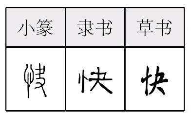 kuài形声,从心,夬(ɡuài)声,本义为心里痛快、高兴,引申为可心、爽快、迅速、(刀、剪、斧子等)锋利、敏锐、副词(相当于“马上”“即将”)等。 【辨析】 ❶以“快”作音符构成的形声字一般读kuài:筷。 ❷快/迅/速/疾/急 见391页“速”。快〈动〉(1)喜欢;喜好;善于。 《金》九: [潘金莲]~把小意儿贴恋,几次把月娘喜欢的没入脚处。又十五: 你还是这等~取笑。又十六: 惟有他大娘性儿不是好的,~眉眼里扫人。 《金》三二: 刘公公还好,那薛公公~顽,把人掐拧的魂也没了。 (2) 表示有可能实现或容易出现某种情况。会;易于。 《金》三四: 小的不敢吃,吃了~脸红,只怕爹来看见。 |