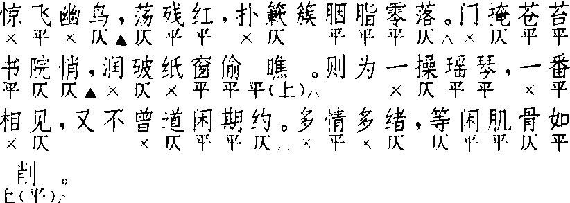 释义 | 念奴娇 念奴娇词牌名。念奴为唐代天宝中著名歌妓,因其声调高亢,遂取作调名。又名《大江东去》、《酹江月》、《赤壁词》、《百字令》、《壶中天》等。有平韵、仄韵二体。仄韵正体为双调一百字,上下阕各四仄韵。平韵正体与仄韵正体略同,惟改仄韵为平韵。又曲牌名。南北曲均有。南曲入高大石调引子,北曲入高大石角套曲,字句格律均与词牌上阕同。另北曲大石调有《百字令》,别名《念奴娇》,字句格律与词牌全同。参见“常用词谱”类。 ☚ 东风第一枝 高阳台 ☛ 念奴娇 念奴娇其用于抒写豪壮感情者,以用入声韵为宜。 又一体 上阕第二句九字,或作“|--,|-| |-|”。 又一 体 ☚ 宴山亭 渡江云 ☛ 念奴娇 念奴娇郑德辉 《㑇梅香》 ![]() 全曲十句:4▲,3,6△。7▲,6△。4,4,5△。4,6△。此曲同宋词,但只用前篇,并可平仄通叶。第二、三句可作五字、四字二句,宋词即有此两种作法。套数首牌。剧套见郑剧,散套见无名氏“园林雨过渐歇”套(《北词广正谱》套数分题引,载《盛世新声》)。《北词广正谱》又收滕玉霄〔百字令〕“柳颦花困”词,谓为曲中小令,实非是。滕词原载《元草堂诗馀》,唐圭璋《全金元词》收之,隋树森《全元散曲》不收,是也。《北曲新谱》误从《北词广正谱》。 ☚ 大石调 六国朝 ☛ 念奴娇 念奴娇长篇小说。顾明道著。1942年11月出版。 ☚ 后防集 赫哲喀拉族 ☛ 念奴娇 念奴娇又名《大江东》、《大江东去》、《大江西上曲》、《大江词》、《大江乘》、《千秋岁》、《百岁令》、《百字令》、《百字谣》、《太平欢》、《古梅曲》、《白雪词》、《赤壁词》、《杏花天》、《壶中天》、《壶中天慢》、《淮甸春》、《湘月》、《寿南枝》、《酹江月》、《酹月》、《无俗念》、《双翠羽》、《庆长春》。见宋苏轼《东坡乐府》。唐元稹《连昌宫词》有注云:“念奴,天宝中名倡,善歌。每岁楼下酺宴,累日之后,万众喧溢,严安之、韦黄裳辈辟易而不能禁,众乐为之罢奏。玄宗遣高力士大呼于楼上曰:‘欲遣念奴唱歌,邠王二十五郎吹小管逐,看人能听否?’未尝不悄然奉诏。其为当时所重也如此。”《开元天宝遗事》云:“念奴者,有姿色,善歌唱,未尝一日离帝左右。每执板当席顾眄,帝谓妃子曰:‘此女妖丽,眼色媚人。’每啭声歌喉,则声出于朝霞之上,虽钟鼓笙竽嘈杂而莫能遏。宫妓中帝之钟爱也。”调名或即本此。王灼《碧鸡漫志》云:“今大石调《念奴娇》,世以为天宝间所制曲,予固疑之;然唐中叶渐有今体慢曲子,而近世有填《连昌词》入此曲者,后复转此曲入道调宫,又转入高宫、大石调。”又姜夔《湘月》词序云:“予度此曲,即《念奴娇》之鬲指声也,于双调中吹之。”可知在两宋,《念奴娇》传唱广泛,曾入大石调(黄钟商)、道调宫(仲吕宫)、高宫(大吕宫)及双调(夹钟商)等宫调。该调音调嘹亮昂扬,晏殊《山亭柳》词云:“偶学念奴声调,有时响遏行云。”俞文豹《吹剑续录》亦记载,时人谓苏轼《念奴娇·赤壁怀古》词须关西大汉执铜琶铁板引吭以歌。《词律》卷一六、《词谱》卷二八列此调。双调,一百字,分仄韵、平韵两类。仄韵者以苏轼“大江东去”一体及“凭空远眺”一体为常见,上、下片各十句四韵。平韵者以陈允平“汉江露冷”一首为正体,上、下片亦各十句四韵。无论押仄韵还是平韵,该调上片第二、三两句凡九字,或作上三下六句法,或作上五下四句法;下片第二、三两句凡九字,或作上五下四句法,或作上四下五句法。宋人词几无例外。《词谱》又列别体九种。《全宋词》此调使用频率达四百八十二次,以沈唐词为首出。 ☚ 乳燕飞 念良游 ☛ 念奴娇苧萝山畔,有当年、西子经行遗迹。霸越亡吴弹指去,留得江山片石。土渍苔封,沙崩浪啮,磊砢难消蚀。一拳千古,动人多少思忆。 宁料一缕溪纱,偶然出浣,显出倾城质。今日西村何限女,谁向尘埃物色? 石倘能言,也应似我,望古增呜咽。精灵何在? 悄然长卧江侧。 这是一首咏物怀古之作。可以说是见景生情,有感而发。浣纱石在浙江诸暨县城南一公里许的若耶溪畔、砢萝山下。高约二米,上刻“浣纱”二字,石上有亭,亭内有碑。相传是春秋时越国美女西施浣纱的地方。西施名夷光,砢萝山下有施姓两村,夷光居西村,故称西施。西施虽生于山野,但容颜绝美。唐李白诗云: “西施越溪女,明艳光云海。未入吴王宫殿时,浣纱古石今犹在。”词的起首便点出浣纱石的所在,在苧萝山下,这里留下了当年西施的遗迹。“霸越亡吴”讲的是春秋时吴越之争。吴王夫差在太湖的夫椒山大败越兵,进而攻破越都,迫使越王勾践屈服求和。勾践卧薪尝胆,任用贤人,整理国政,刻苦自励,志图恢复。并要相国范蠡在国中遍选美女,结果西施在浣纱石上浣纱时,被范蠡发现选中。“饰以罗縠,教以容步,习于土城。”三年后献给吴王夫差,夫差大悦,从此耽于女色,不理朝政,最后终于被越国打败,吴国灭亡,越国成为春秋五霸之一。这段史实,在历史长河中,不过是弹指一挥间的事。“弹指”,一弹指顷,形容时间短暂。如今,当年在历史舞台上叱咤风云的人物都已成为过去,只留下这青山碧水,只留下西施当年浣纱的石头。虽然经过尘封土埋,石头上长满了青苔,虽然为流沙所毁坏,为浪花所侵蚀,但它傲然兀立,峻伟挺拔(磊砢,壮大貌),仿佛向人们讲述那个久远年代的故事。“一拳千